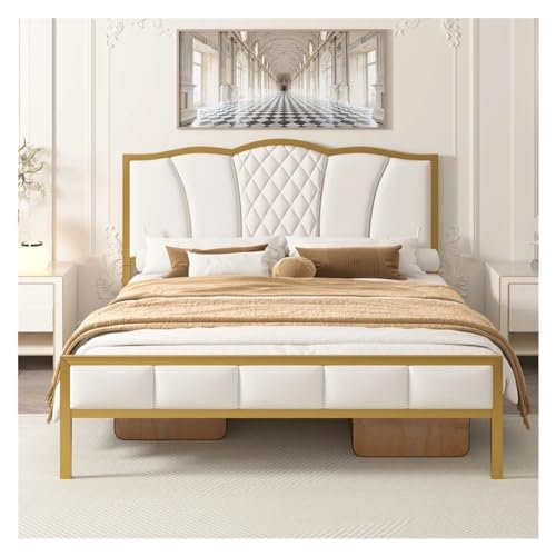 HONGYISHIのホワイトモダンシンプルクイーンベッドフレームは、レザー布張りのヘッドボードが特徴で、洗練されたデザインと快適性を両立しています。