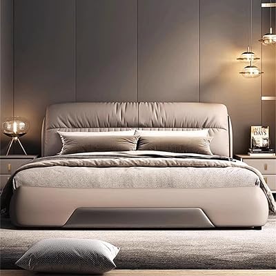 プレミアムレザー仕上げのヘッドボードは、快適な背もたれを提供しながら寝室をエレガントに演出。頑丈な木製すのこと金属フレームにより、最大700kgの耐荷重を実現し、静音設計で快適な睡眠環境を保証します。