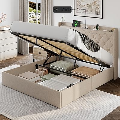 DLCQIJI モダンライト ラグジュアリーベッドフレームは、クイーンサイズ対応のリフトアップ収納機能を備えた高級感あふれる製品です。
