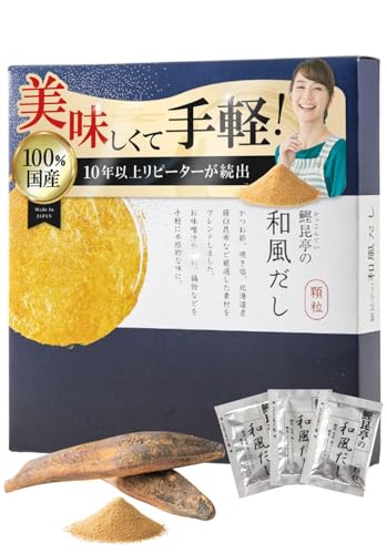鹿児島県産かつお節や北海道産昆布など7種類の厳選された国産原料を贅沢に使用しており、中でも広島県産の「焼牡蠣」を配合している点が大きな特徴です。お湯を注ぐだけで、家庭でも手軽に本格的な料亭の味わいを再現できます。